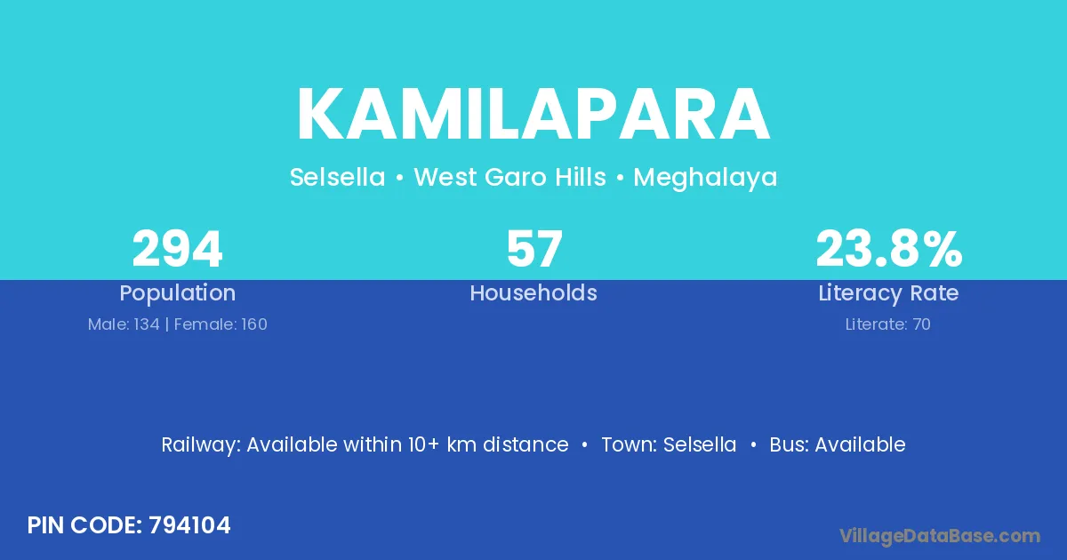 Kamilapara village has a total population of 294 people, of which 134 are males and 160 are females.