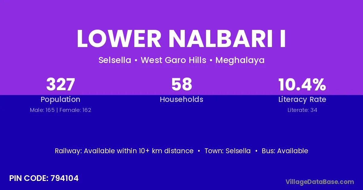 Selsella is the nearest town to Lower Nalbari I village for major economic activities