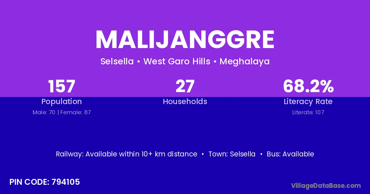 Malijanggre village is located in the Selsella Subdivision of the West Garo Hills district in Meghalaya .