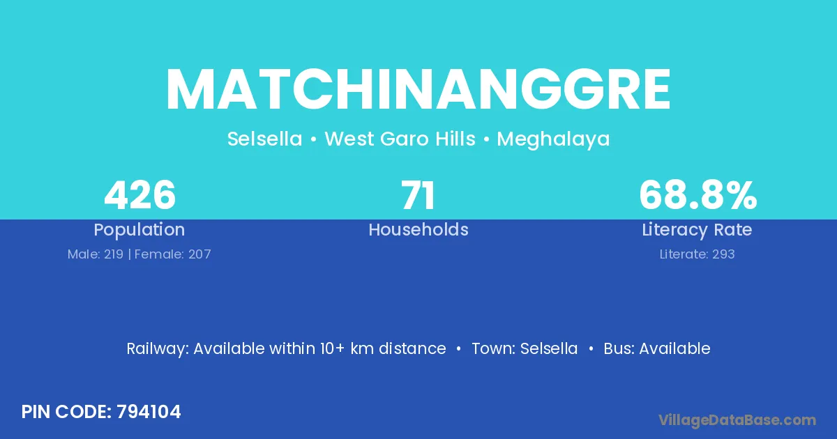 Matchinanggre village has a total population of 426 people, of which 219 are males and 207 are females.