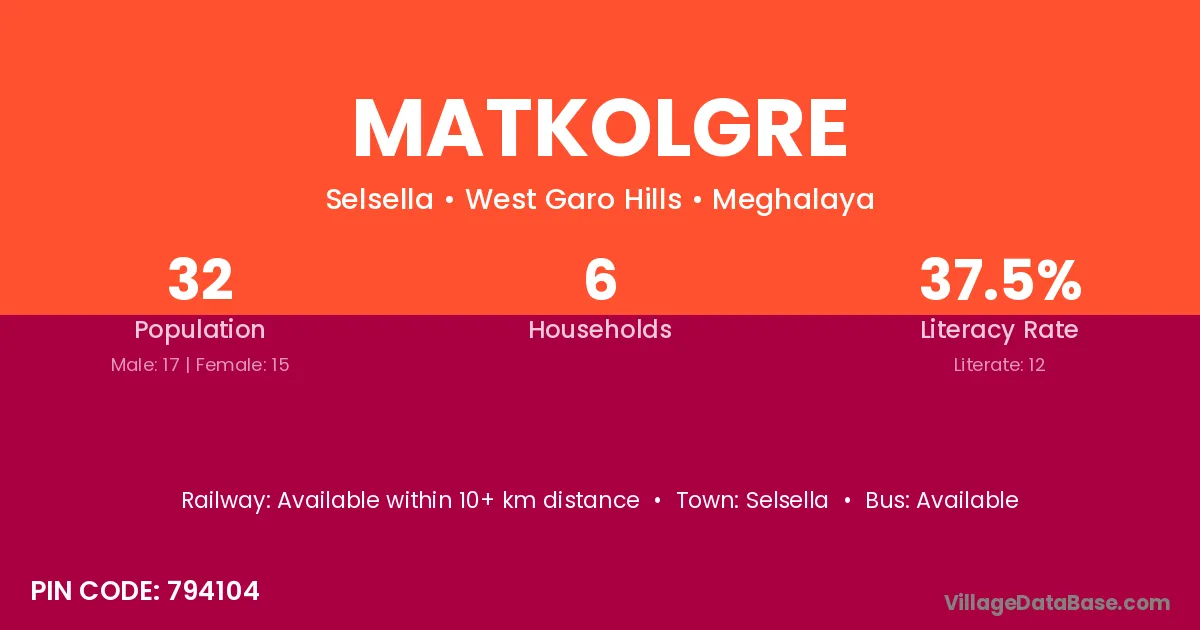 There are approximately 6 households in Matkolgre village.