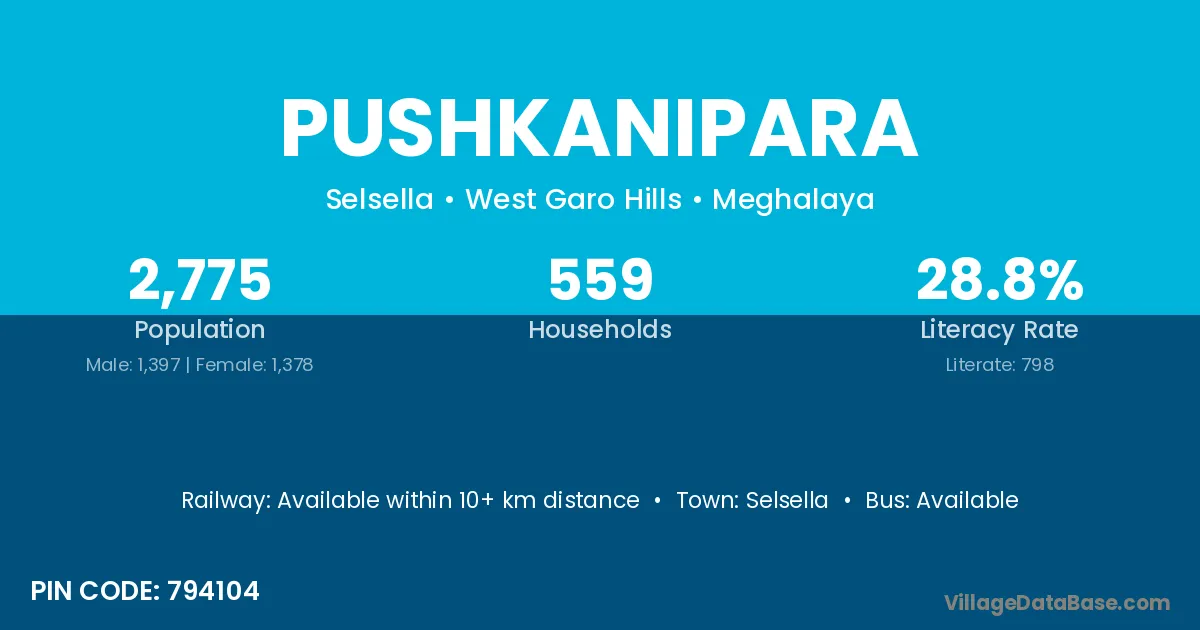 Selsella is the nearest town to Pushkanipara village for major economic activities