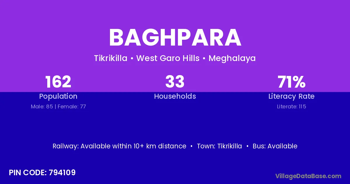 Tikrikilla is the nearest town to Baghpara village for major economic activities