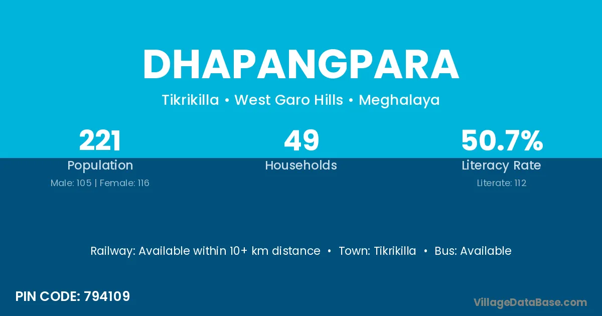 Tikrikilla is the nearest town to Dhapangpara village for major economic activities