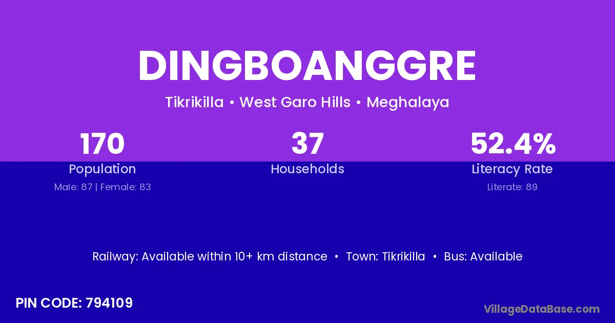 Dingboanggre village is located in the Tikrikilla Subdivision of the West Garo Hills district in Meghalaya .