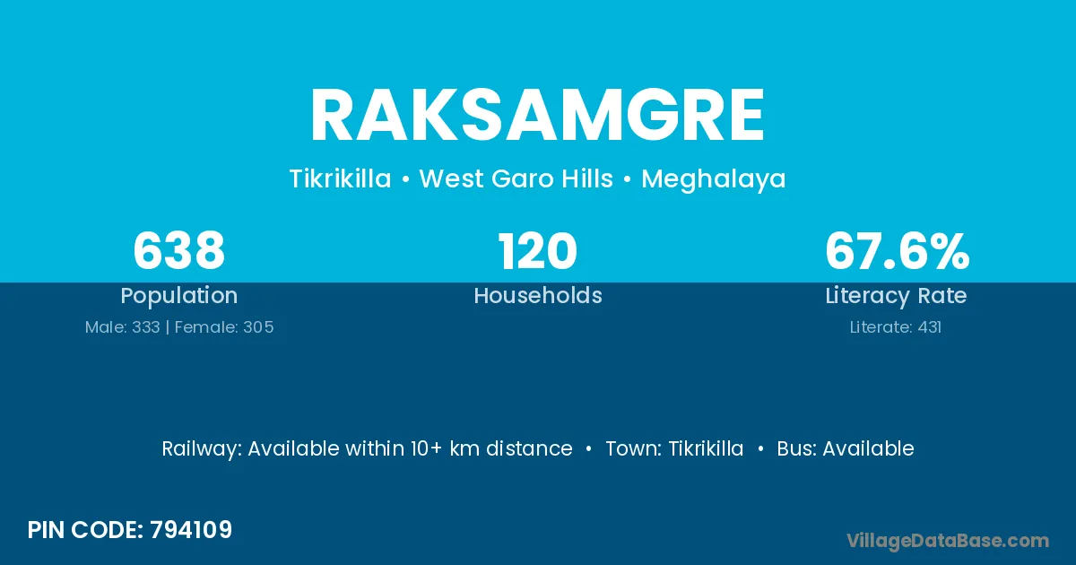 Raksamgre village has a total population of 638 people, of which 333 are males and 305 are females.