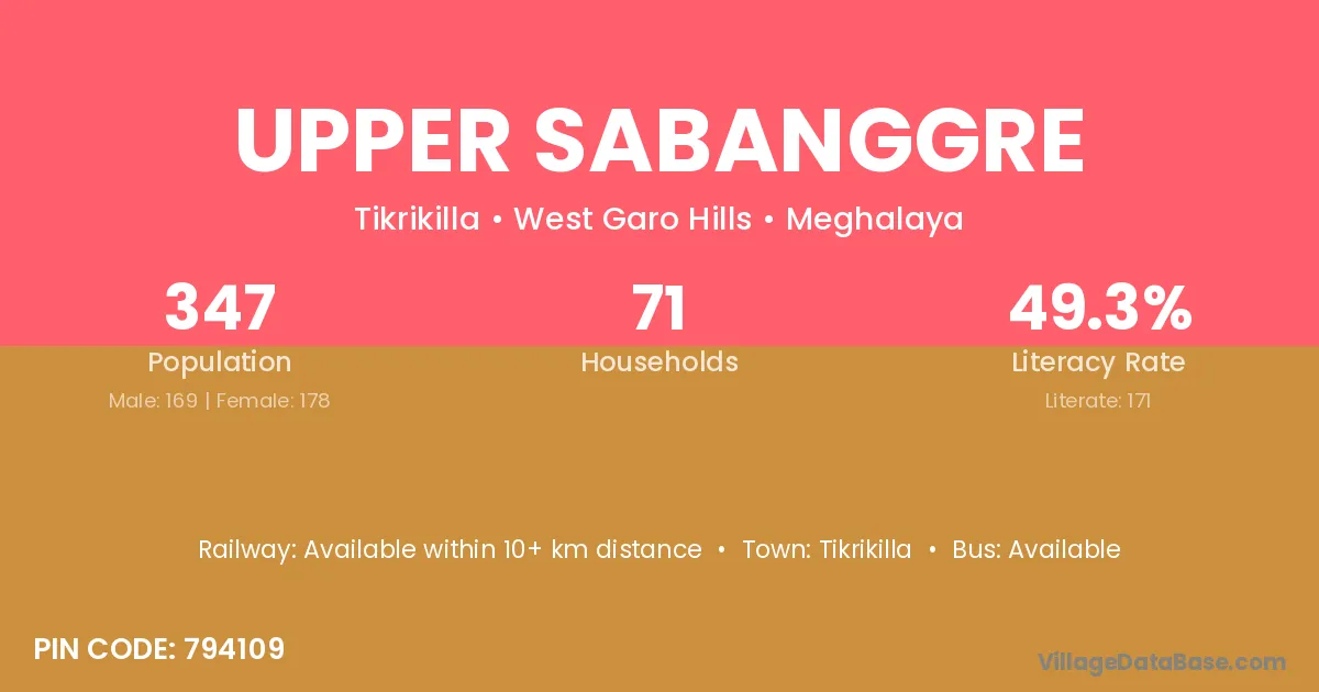 Upper Sabanggre village has a total population of 347 people, of which 169 are males and 178 are females.