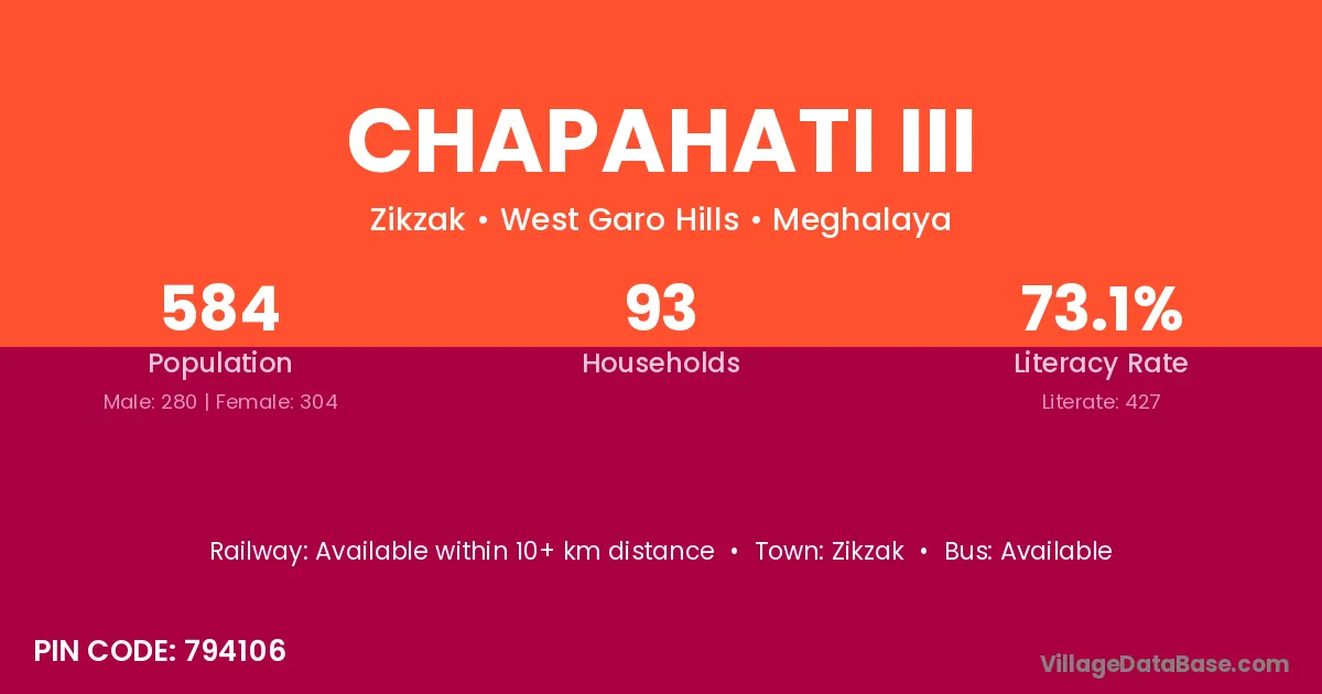 Chapahati Iii village has a total population of 584 people, of which 280 are males and 304 are females.