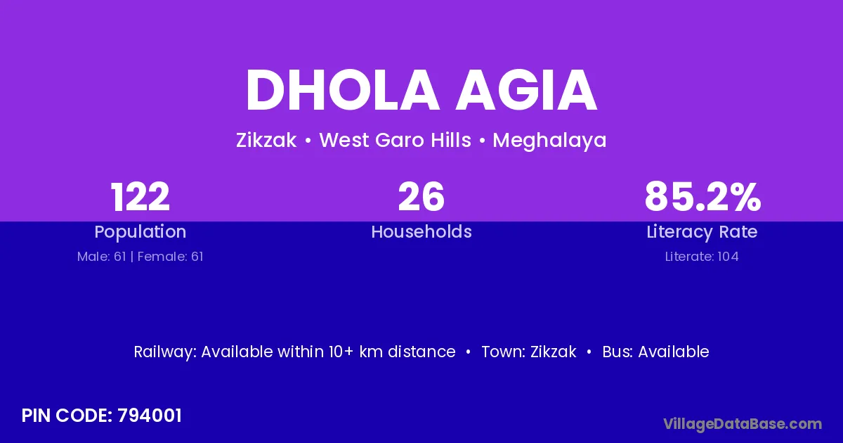 According to Census 2011 information, the village code of Dhola Agia village is 794001.