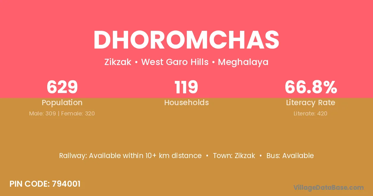 According to Census 2011 information, the village code of Dhoromchas village is 794001.