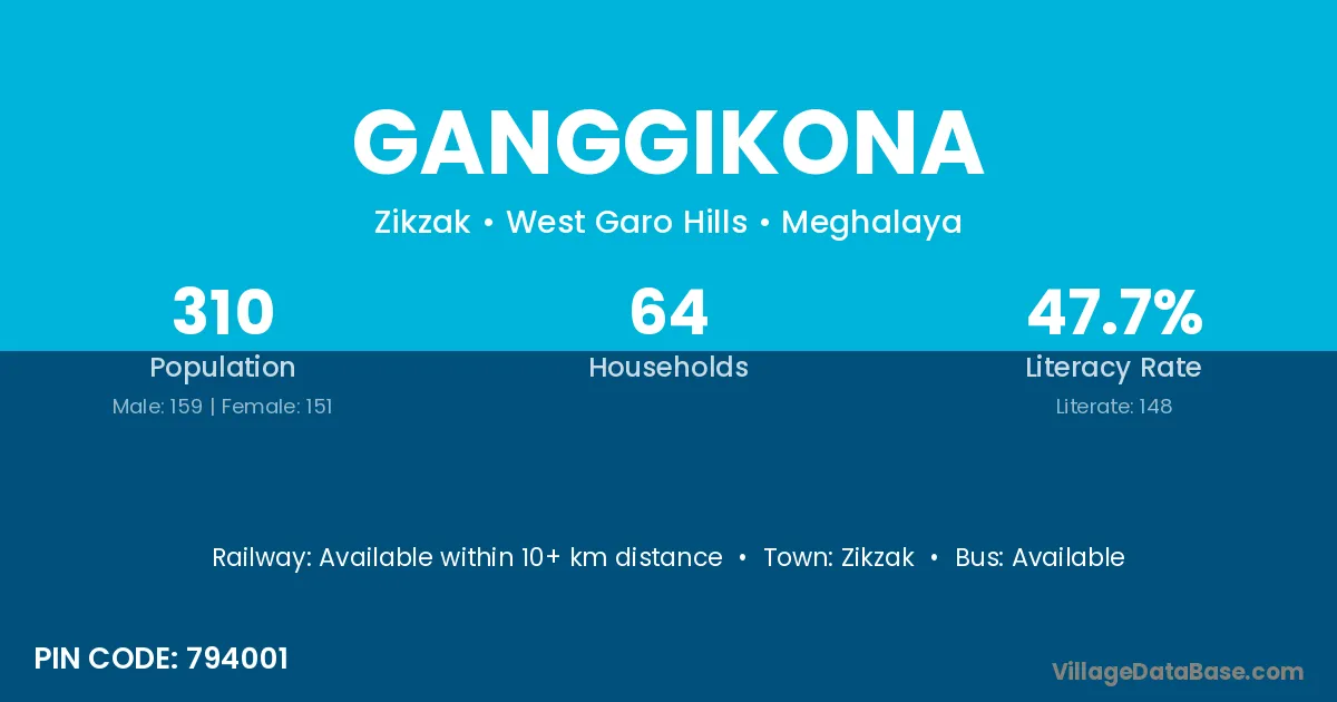 Ganggikona village has a total population of 310 people, of which 159 are males and 151 are females.