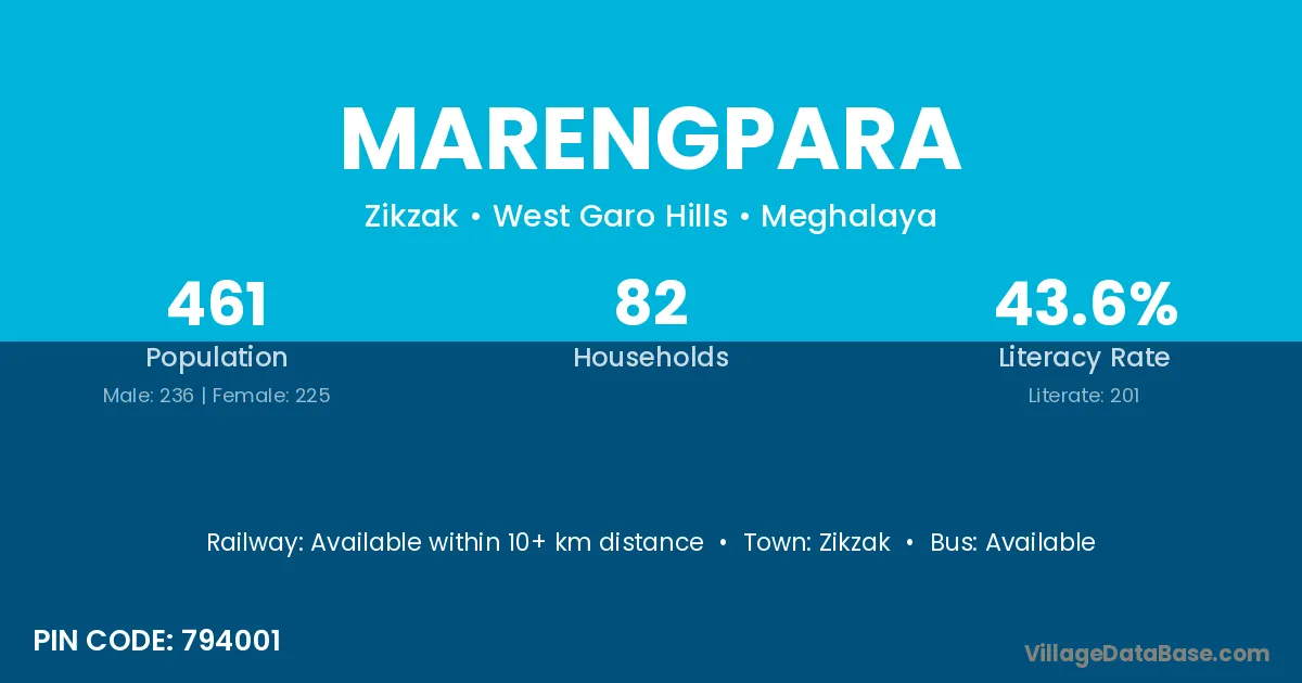 Marengpara village has a total population of 461 people, of which 236 are males and 225 are females.