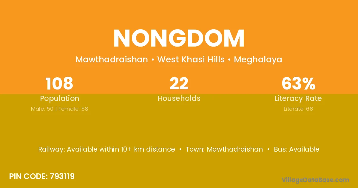 According to Census 2011 information, the village code of Nongdom village is 793120.