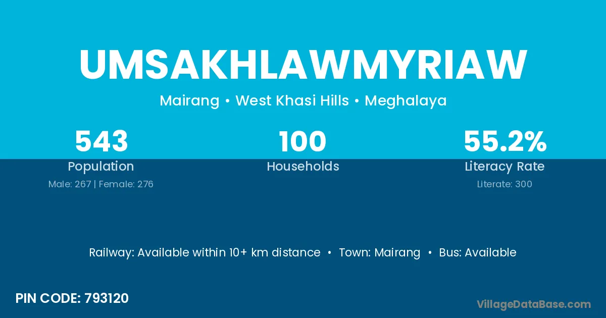 Umsakhlawmyriaw village has a total population of 543 people, of which 267 are males and 276 are females.