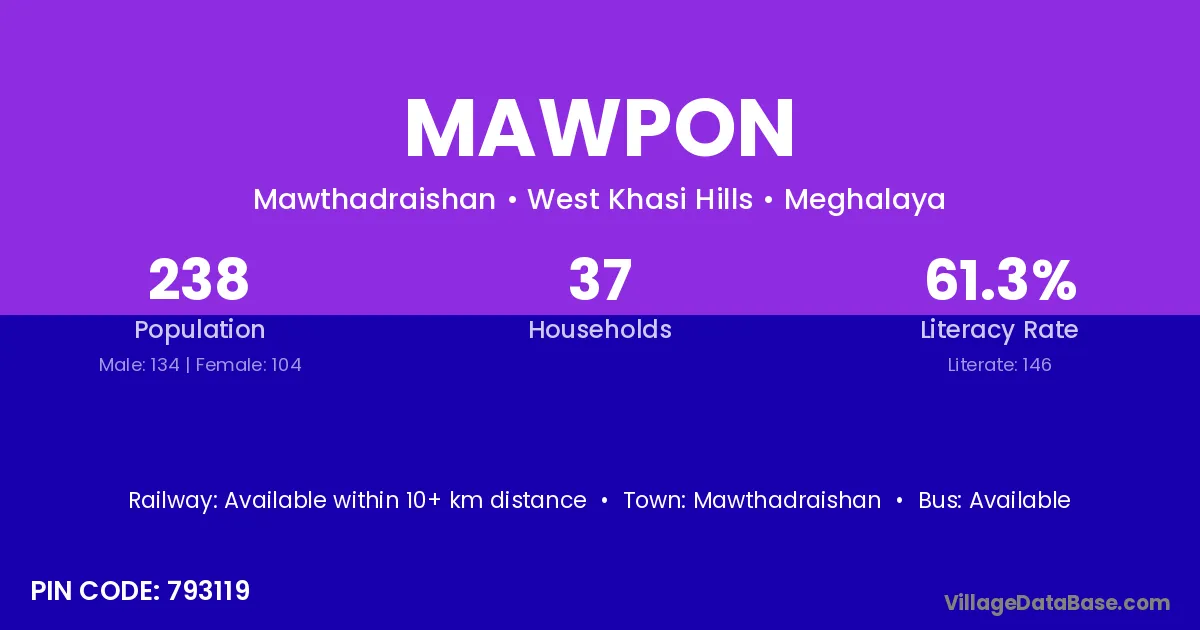 According to Census 2011 information, the village code of Mawpon village is 793119.