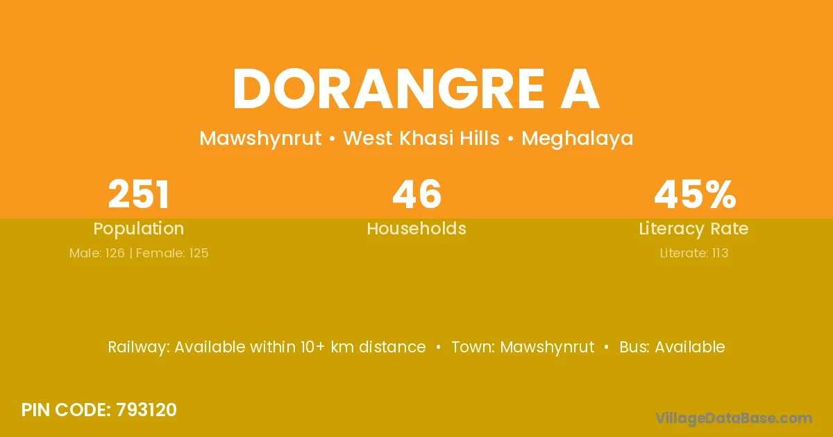 Mawshynrut is the nearest town to Dorangre A village for major economic activities