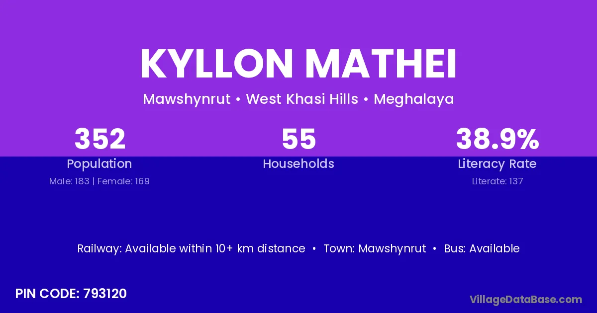 According to Census 2011 information, the village code of Kyllon Mathei village is 793120.
