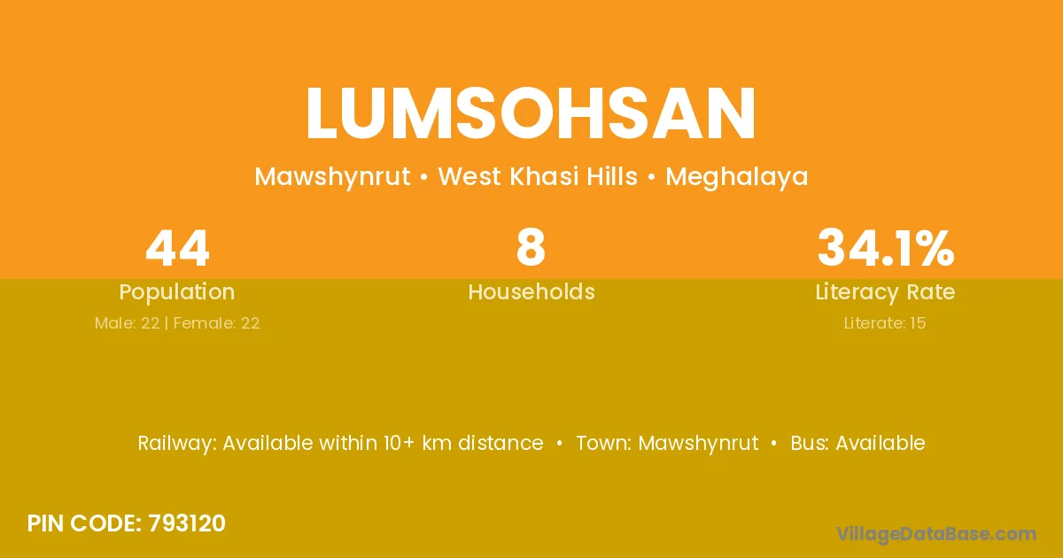 According to Census 2011 information, the village code of Lumsohsan village is 793120.