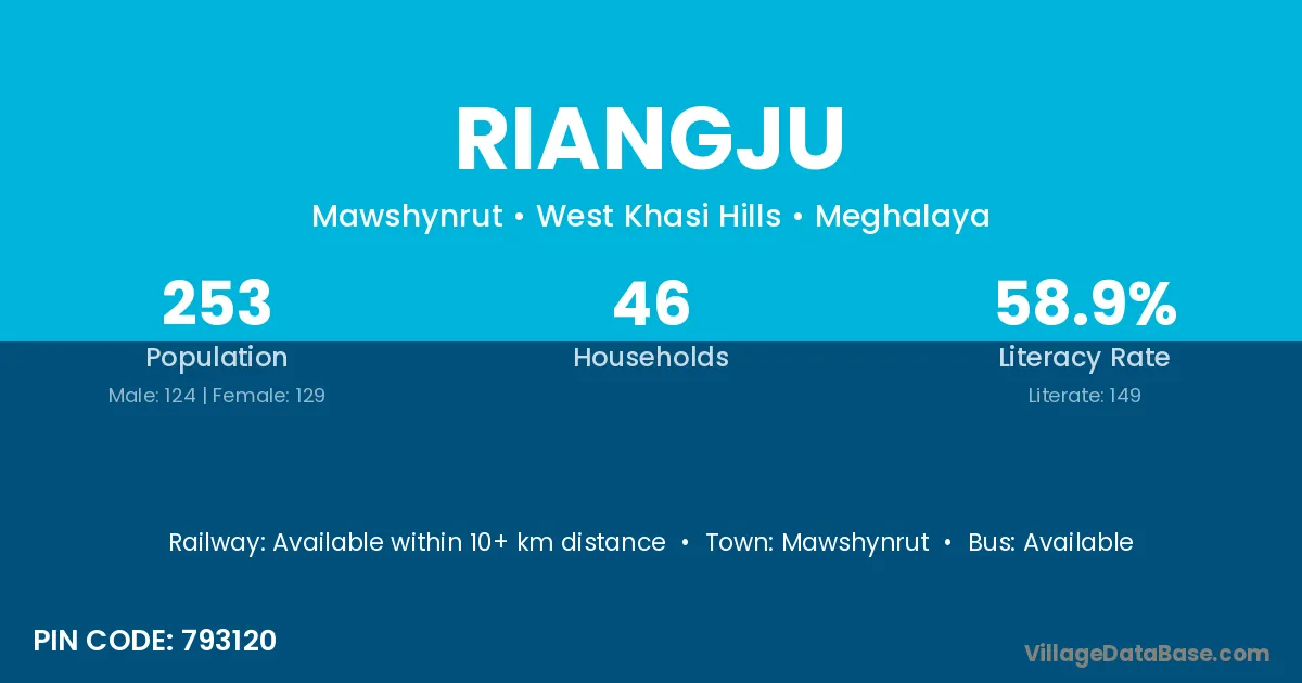 Riangju village has a total population of 253 people, of which 124 are males and 129 are females.