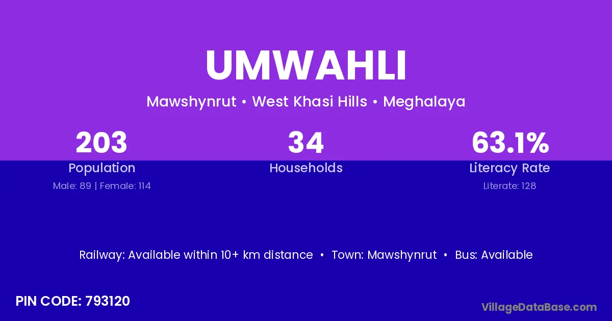 According to Census 2011 information, the village code of Umwahli village is 793120.