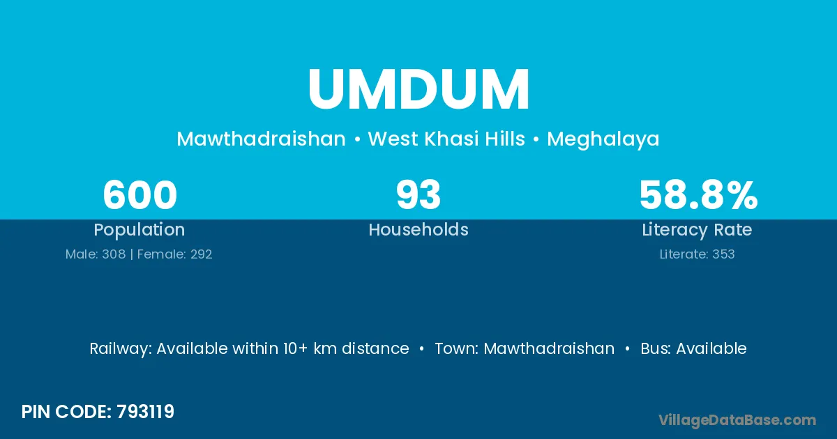 Mawthadraishan is the nearest town to Umdum village for major economic activities