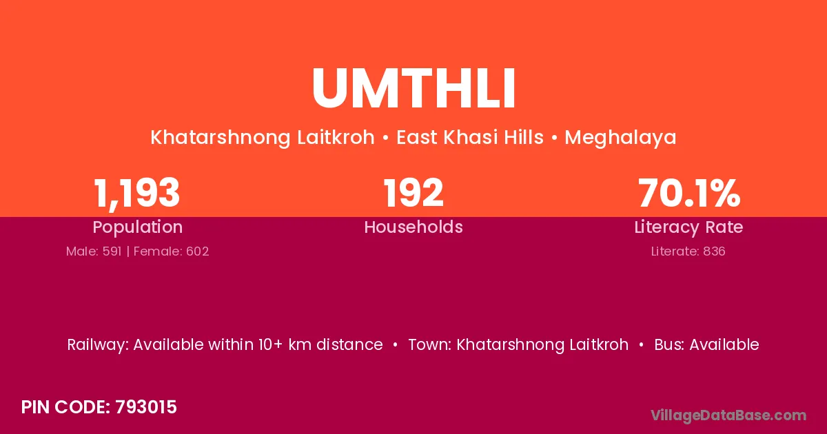 According to Census 2011 information, the village code of Umthli village is 793119.