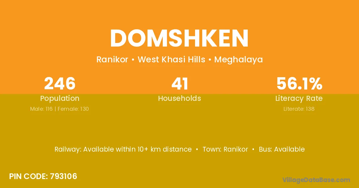 Ranikor is the nearest town to Domshken village for major economic activities