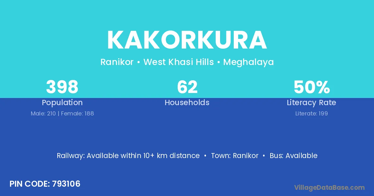 Ranikor is the nearest town to Kakorkura village for major economic activities