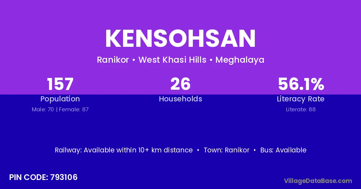 Kensohsan village is located in the Ranikor Subdivision of the West Khasi Hills district in Meghalaya .