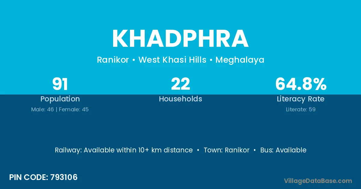 Ranikor is the nearest town to Khadphra village for major economic activities