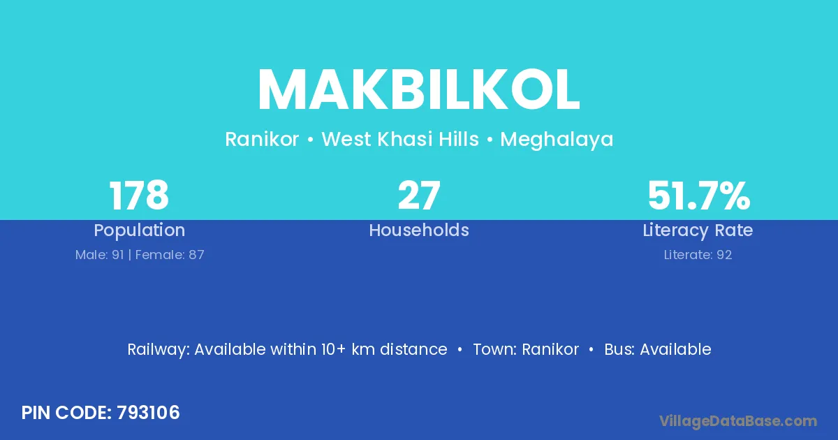 Ranikor is the nearest town to Makbilkol village for major economic activities