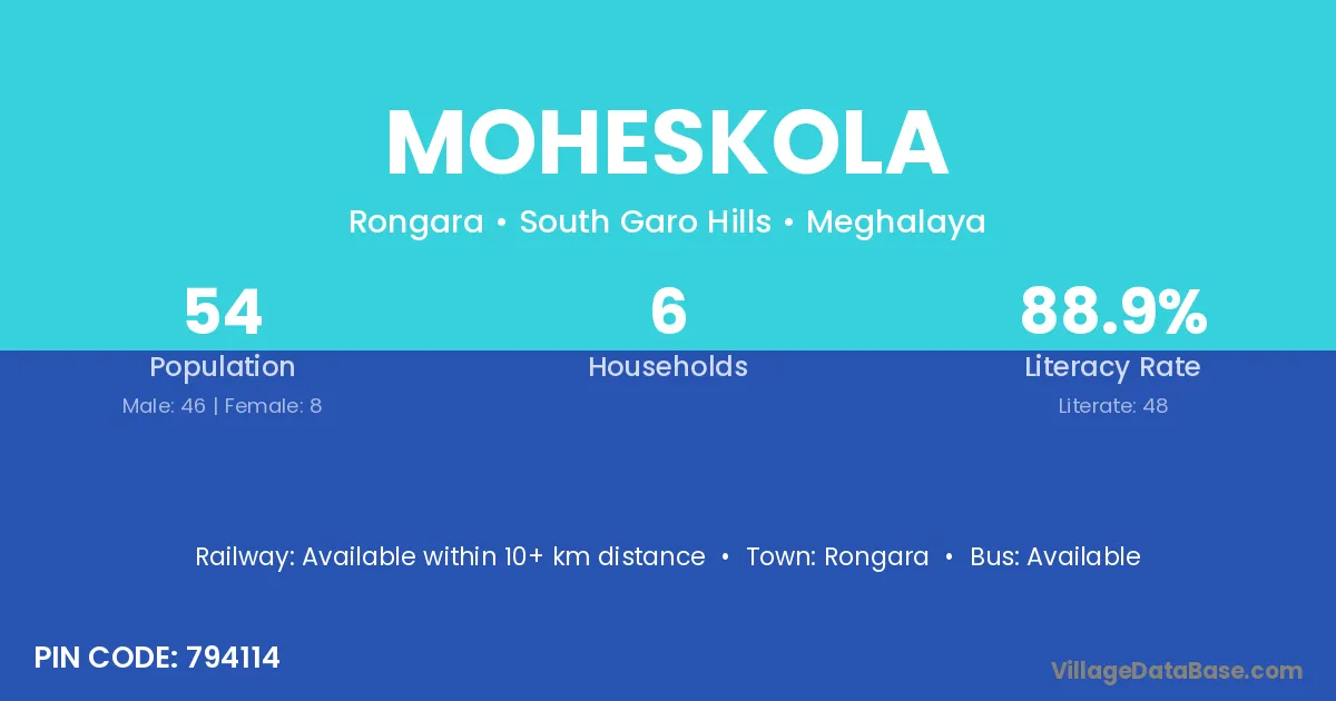 Ranikor is the nearest town to Moheskola village for major economic activities