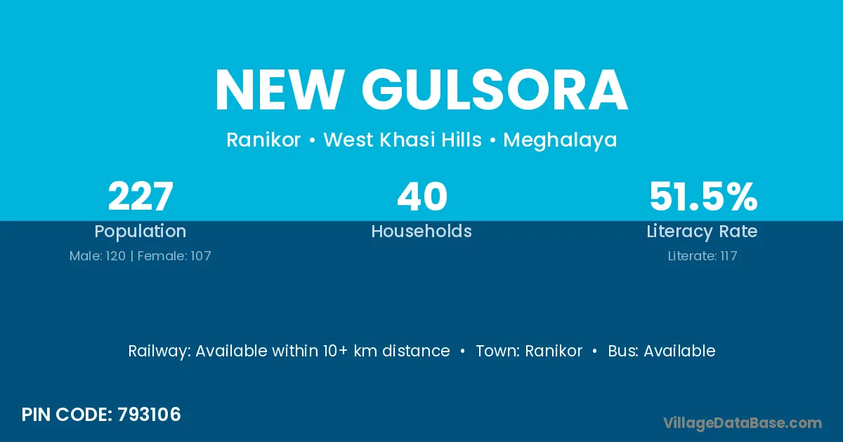 New Gulsora village has a total population of 227 people, of which 120 are males and 107 are females.