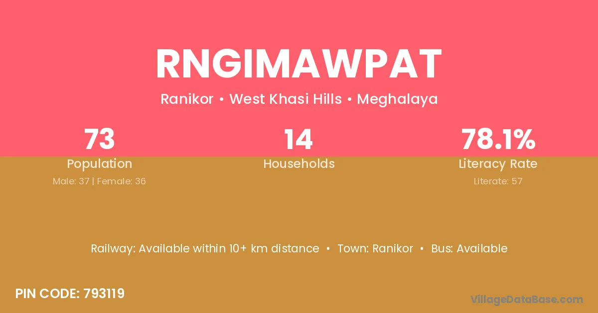 Rngimawpat village has a total population of 73 people, of which 37 are males and 36 are females.