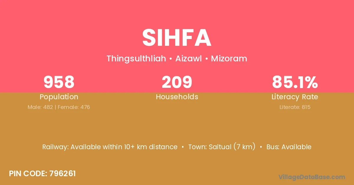 Saitual (7 km) is the nearest town to Sihfa village for major economic activities and is located approximately 7 km away.