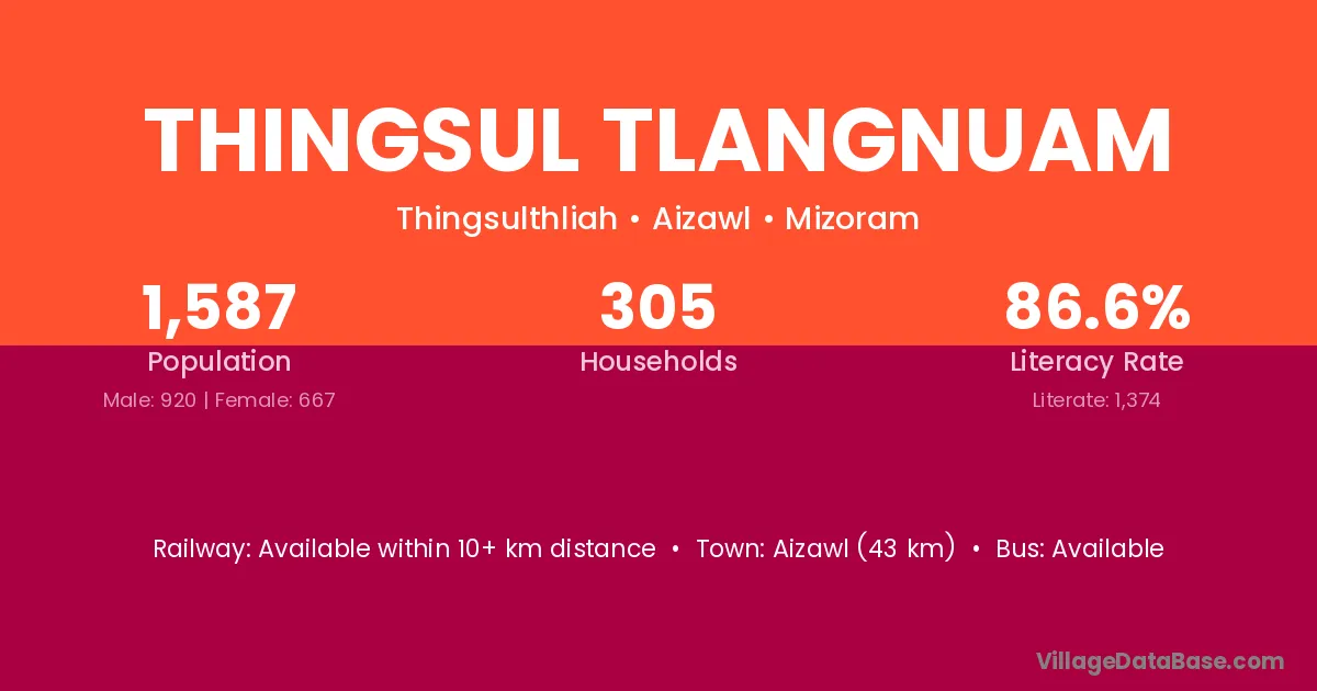 Thingsul Tlangnuam village has a total population of 1,587 people, of which 920 are males and 667 are females.