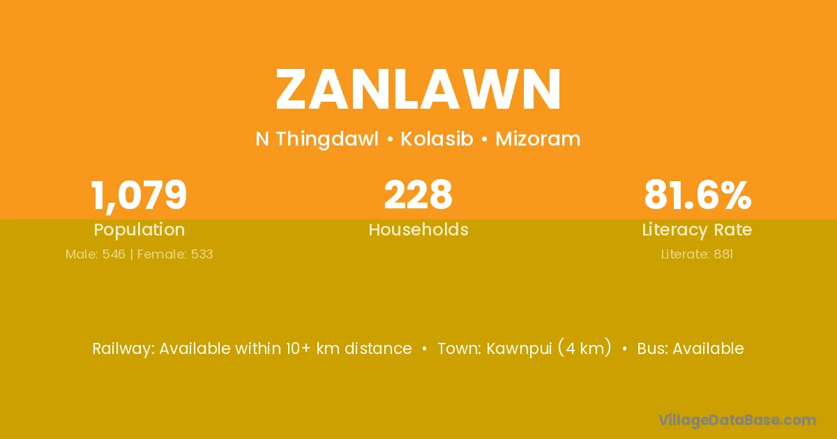 Kawnpui (4 km) is the nearest town to Zanlawn village for major economic activities and is located approximately 4 km away.
