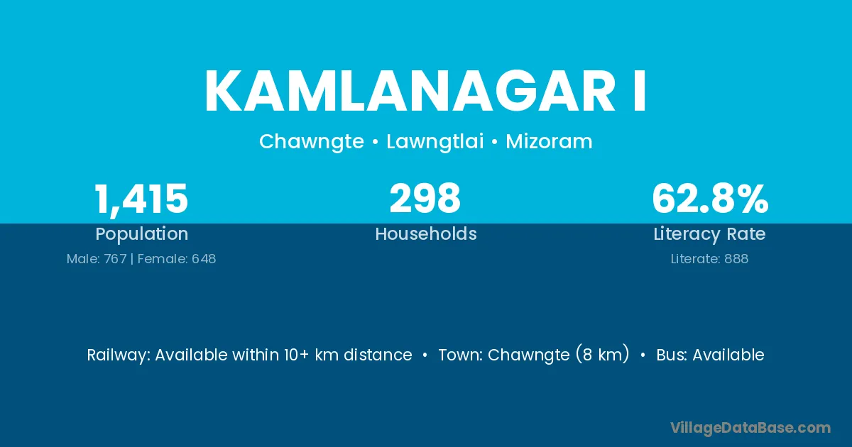 Chawngte (8 km) is the nearest town to Kamlanagar I village for major economic activities and is located approximately 8 km away.