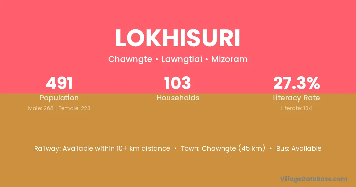 Chawngte (45 km) is the nearest town to Lokhisuri village for major economic activities and is located approximately 45 km away.