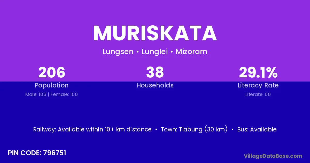 Tlabung (30 km) is the nearest town to Muriskata village for major economic activities and is located approximately 30 km away.
