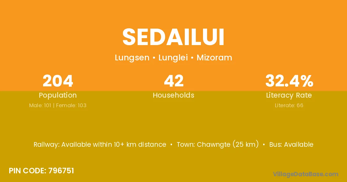Chawngte (25 km) is the nearest town to Sedailui village for major economic activities and is located approximately 25 km away.