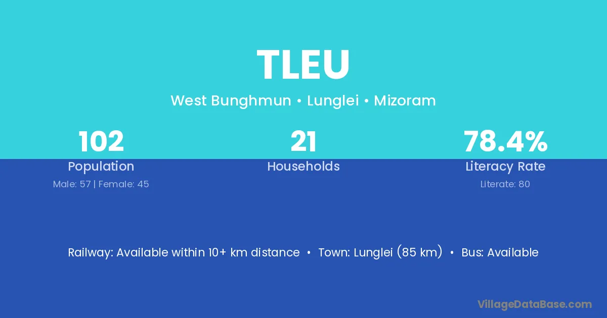 Lunglei (85 km) is the nearest town to Tleu village for major economic activities and is located approximately 85 km away.
