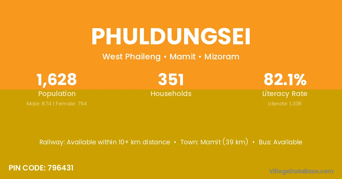 Mamit (39 km) is the nearest town to Phuldungsei village for major economic activities and is located approximately 39 km away.