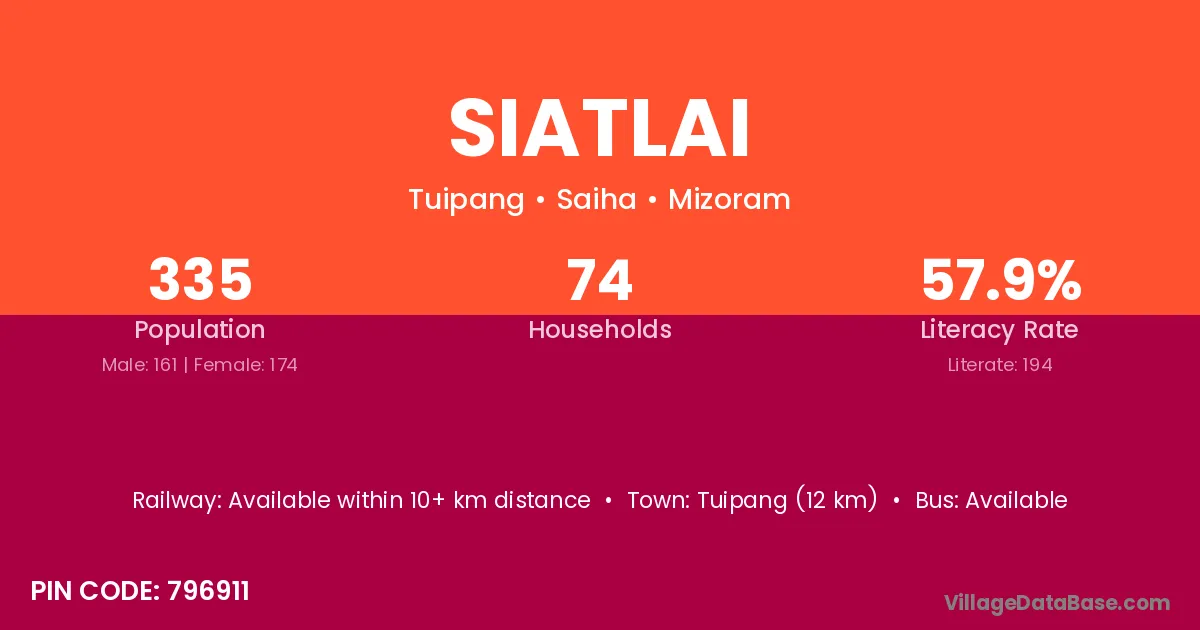Siatlai village has a total population of 335 people, of which 161 are males and 174 are females.