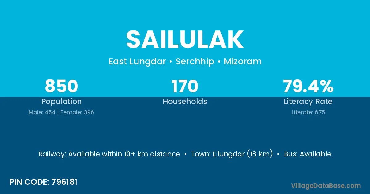 According to Census 2011 information, the village code of Sailulak village is 796181.