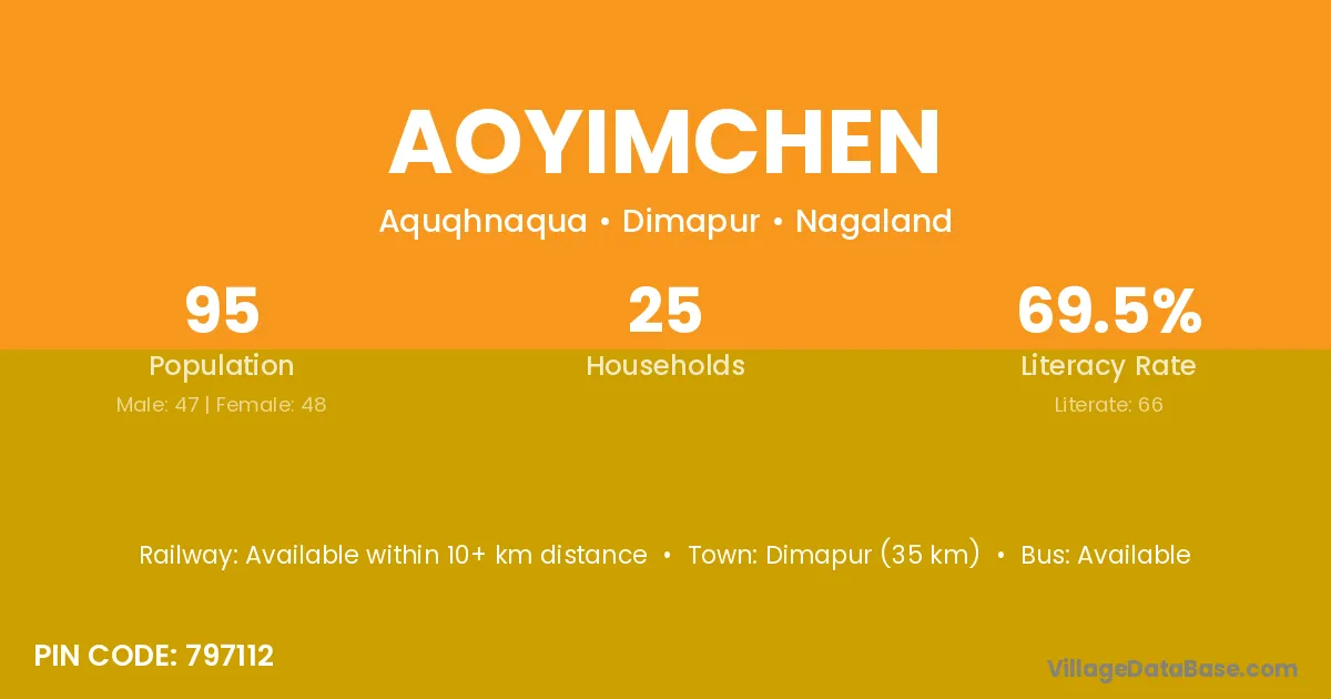Dimapur (35 km) is the nearest town to Aoyimchen village for major economic activities and is located approximately 35 km away.