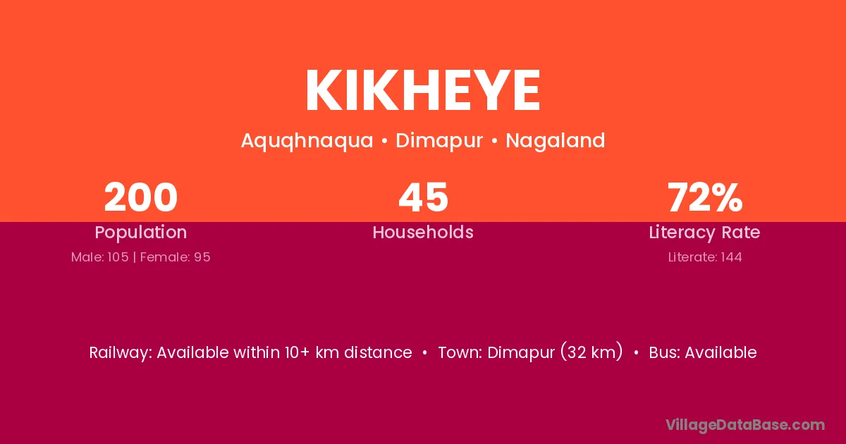 Kikheye village has a total population of 200 people, of which 105 are males and 95 are females.
