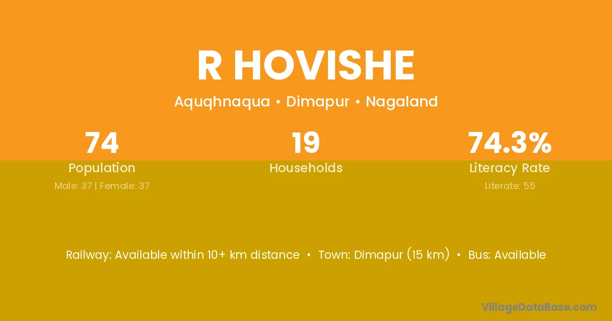 R Hovishe village has a total population of 74 people, of which 37 are males and 37 are females.