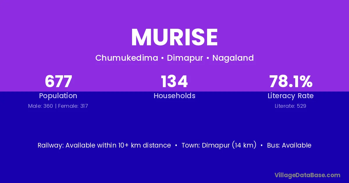 Dimapur (14 km) is the nearest town to Murise village for major economic activities and is located approximately 14 km away.
