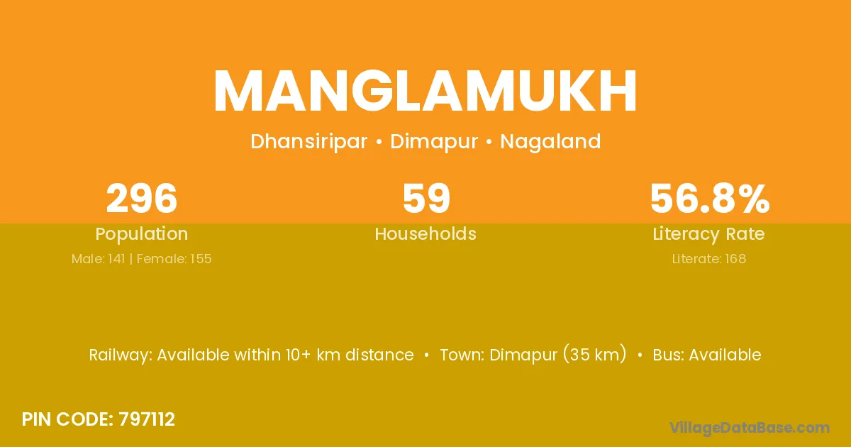 Dimapur (35 km) is the nearest town to Manglamukh village for major economic activities and is located approximately 35 km away.